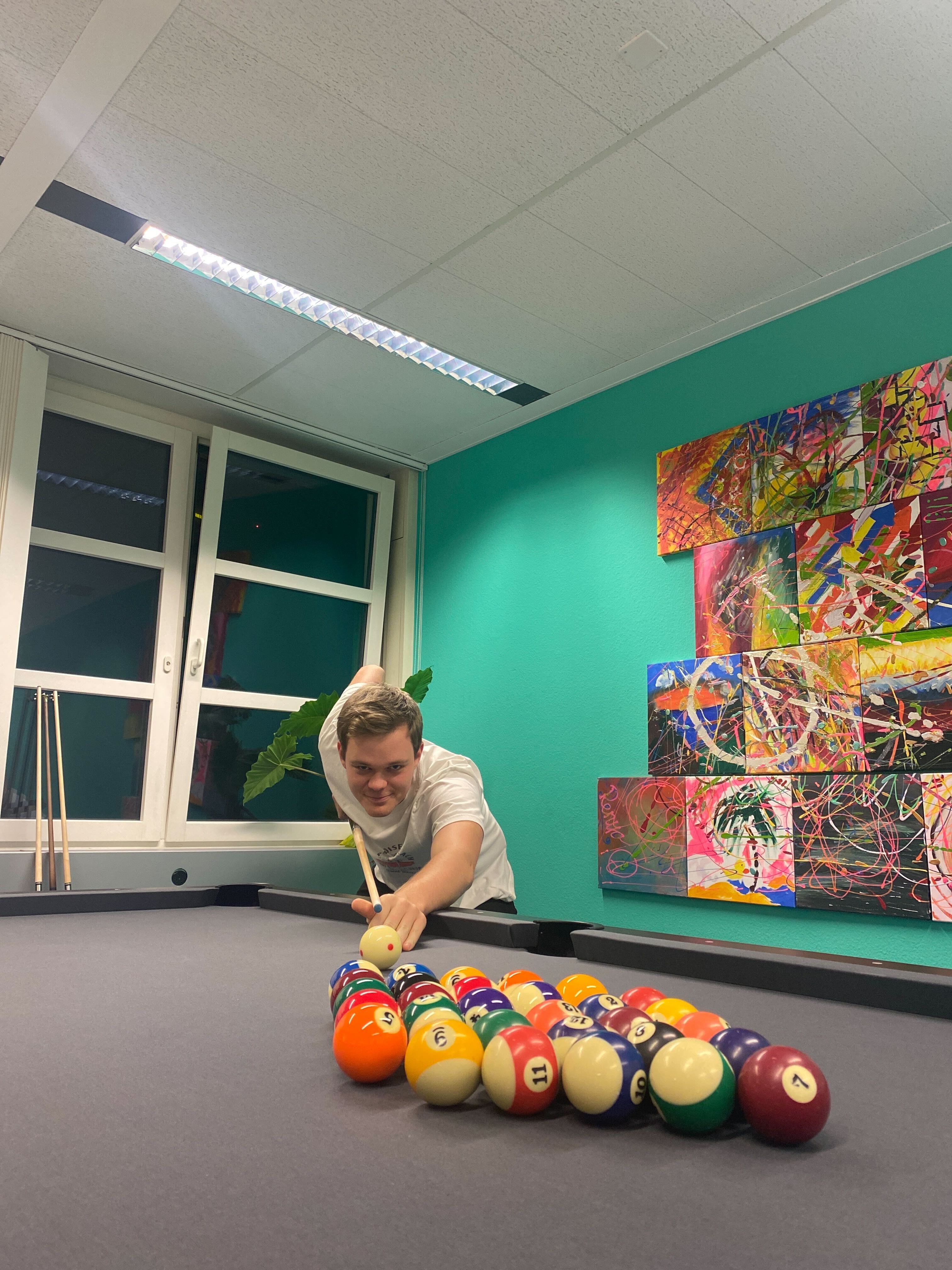 Wer produktiv sein will, benötigt im Laufe des Tages eine Pause. Studien zeigen, dass Pausen produktiver machen als, wenn man einfach durcharbeitet. Bei uns im Büro ist der Billardtisch die beliebteste Pausenaktivität. Hier können Teammitglieder ihre Bugs und Pull-Requests beiseitelegen, um Kugeln zu versenken und dabei mit Kollegen zu lachen. Die Spiele sind zwar nur zum Spass, aber sie wecken dennoch einen gesunden Ehrgeiz unter den Spielern – niemand will verlieren. Abends, nach dem Arbeitstag, bleiben unsere Teammitglieder oft noch, um ein Bier zu trinken und gemeinsam Billard zu spielen – das ist grossartig!