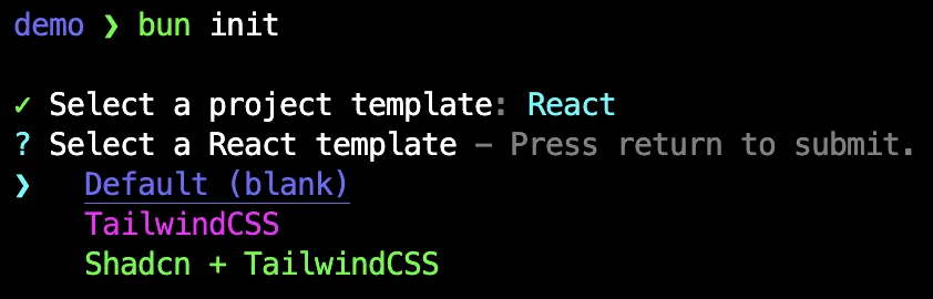 Moderne JavaScript-Tools spiegeln den Wechsel zu Tailwind wider. Beispielsweise wird beim Initialisieren eines neuen React Projekts mit Bun Bootstrap nicht als Template angeboten. Die einzigen Optionen sind die Einrichtung eines leeren Projekts oder die Verwendung von Tailwind.